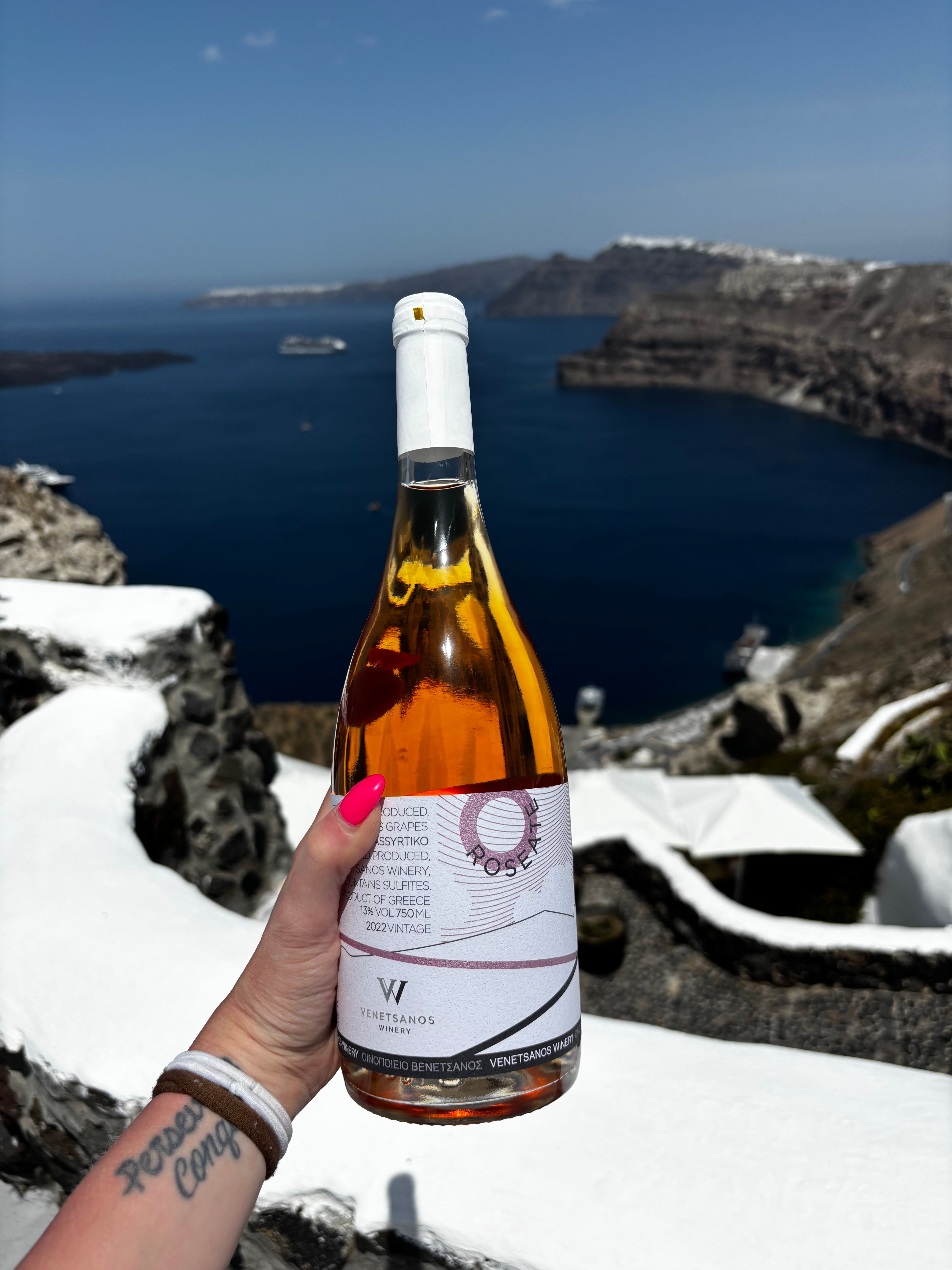 We visited Venetsanos Winery to sample these unique wines. We tasted four varieties, and the group consensus was clear: the rosé and dessert wines were the favorites. It was a relaxing afternoon, and we spent time mingling with the group. At one point, we all began sharing engagement and wedding stories—many couples on the tour had been married over 40 years, and it was heartwarming to hear about their journeys together.